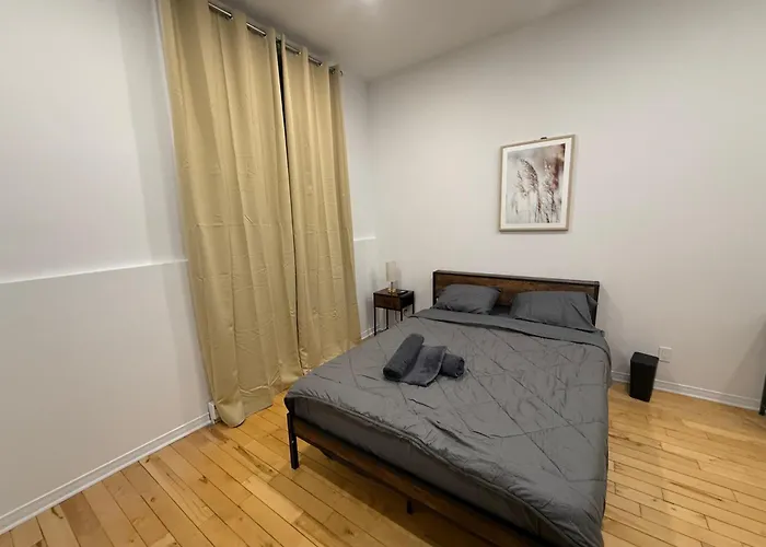 To enjoy your vacation in Montreal, stay at 1 Bedroom Apartment Near Montreal Downtown With Parking, which is merely 500 metres from the Frontenac Library and about a 10-minute drive from the towering Gothic Revival church "Notre-Dame Basilica".